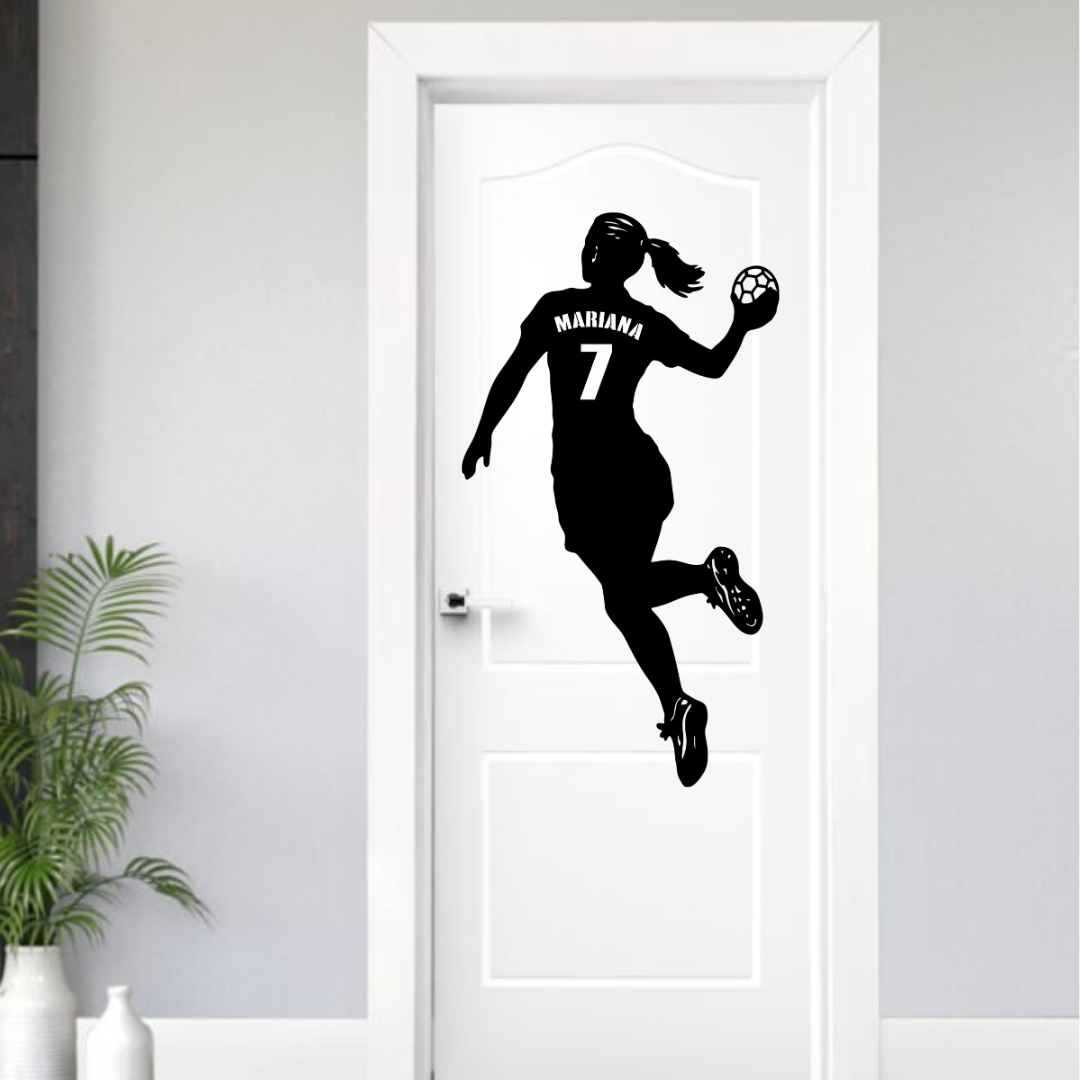 Nossa Silhueta de Jogadora de Handebol Personalizada é perfeita para decorar portas ou paredes, deixando o ambiente moderno, esportivo e cheio de personalidade. Ideal para quem ama handebol e quer trazer a energia do esporte para dentro do quarto! 🏆🔥