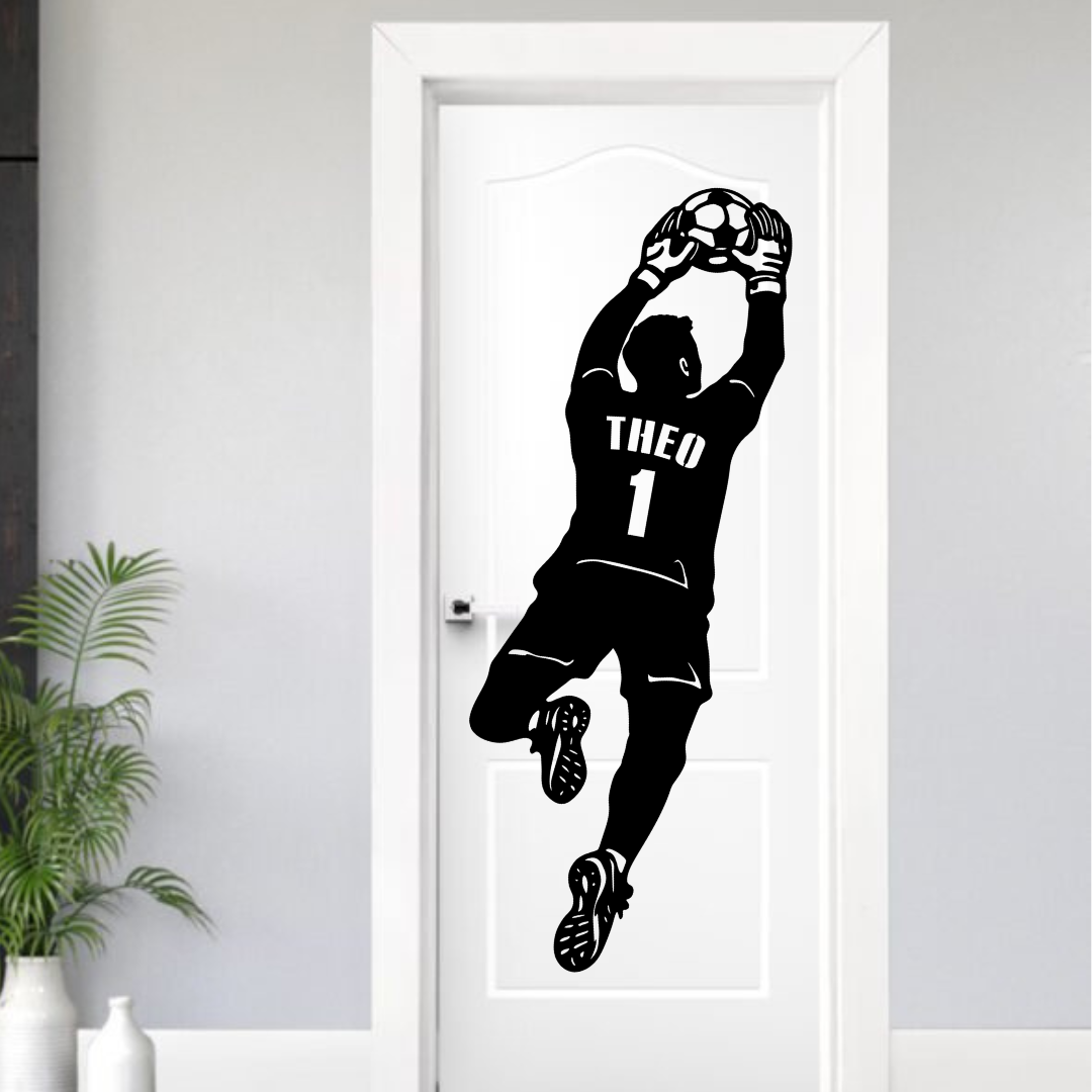 Nossa Silhueta de Jogador Goleiro Personalizada é perfeita para decorar portas ou paredes, deixando o ambiente moderno, esportivo e cheio de personalidade.
