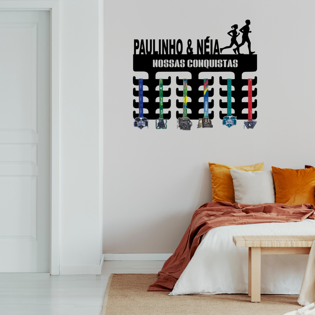 Porta Medalhas Corrida Casal com Nome