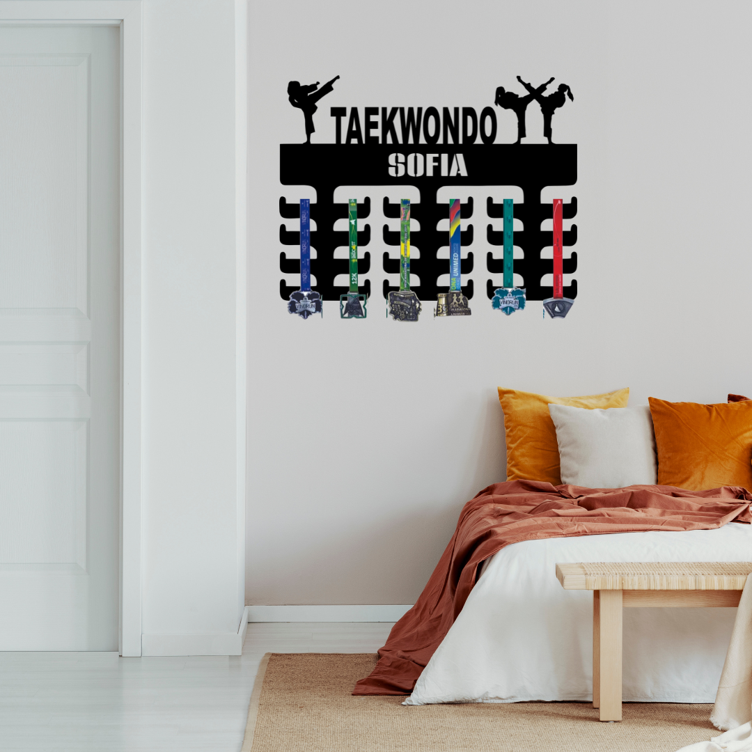 Porta Medalhas Taekwondo Feminino com Nome