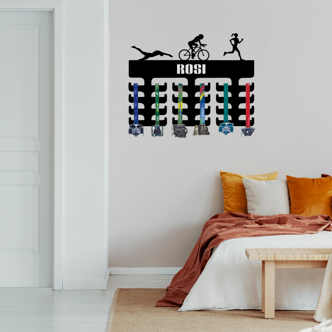 Porta Medalhas Triatlo Feminino com Nome
